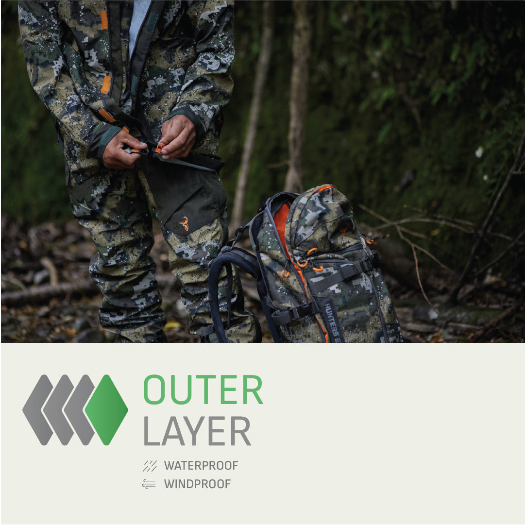 Your outer waterproof layers will see quite a bit of use during the roar thanks to wet bush and windy days. It's particularly important this time of year that you go quiet with your rain gear. The Odyssey V2 range is ideal for this and the Downpour Elite range will come in a close second. if the forecast is looking good, or unpredictable, consider something super light and packable to be safe. The Halo and Storm jackets are so small and light that they'll disappear in the bottom of your pack but save your arse when needed. They both pack down incredibly small and weigh next to nothing but are also extremely waterproof and breathable.