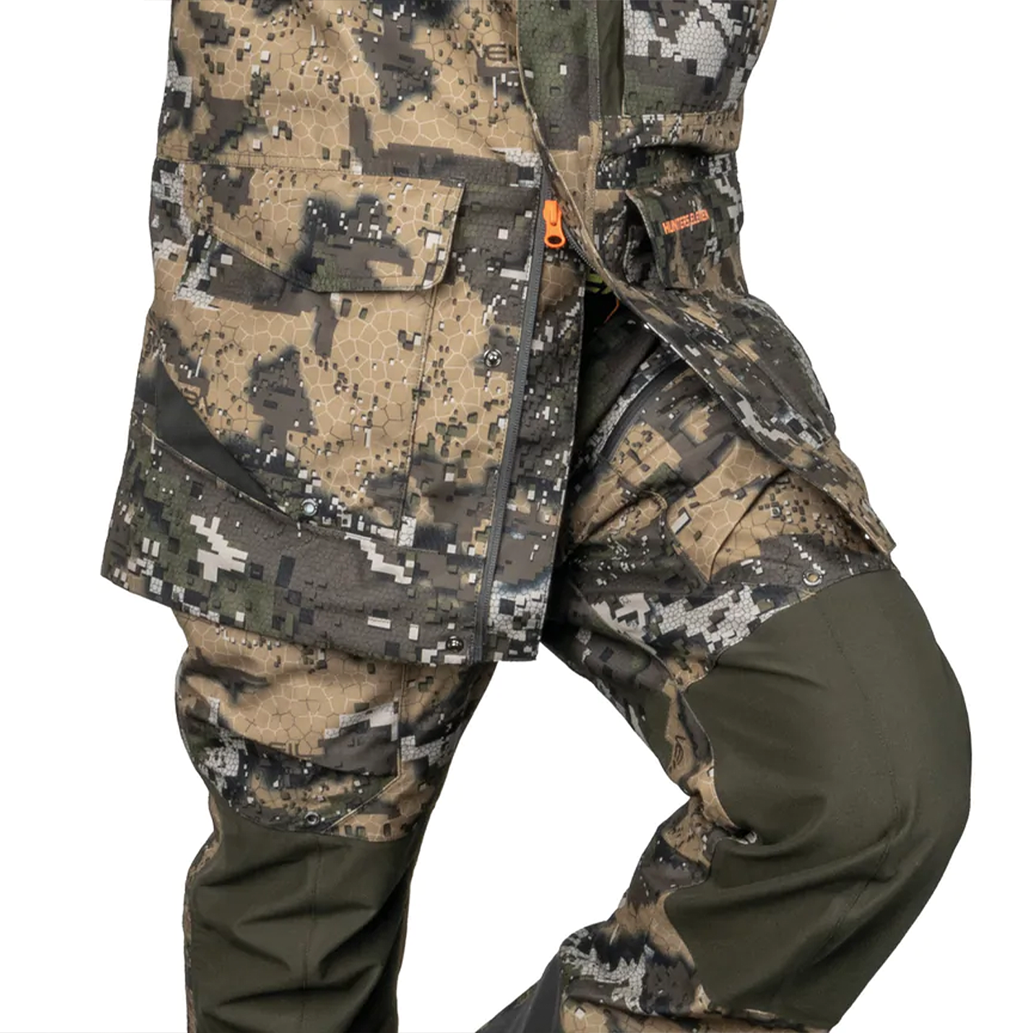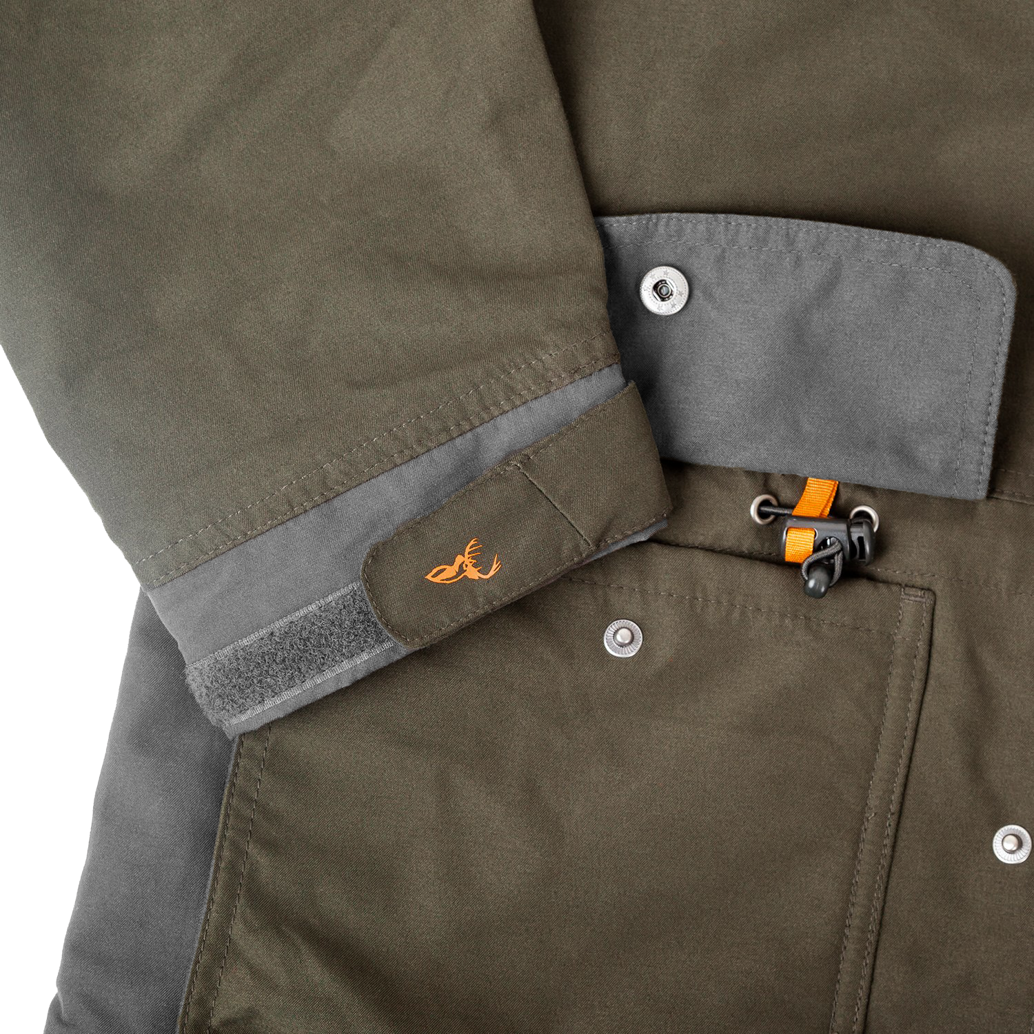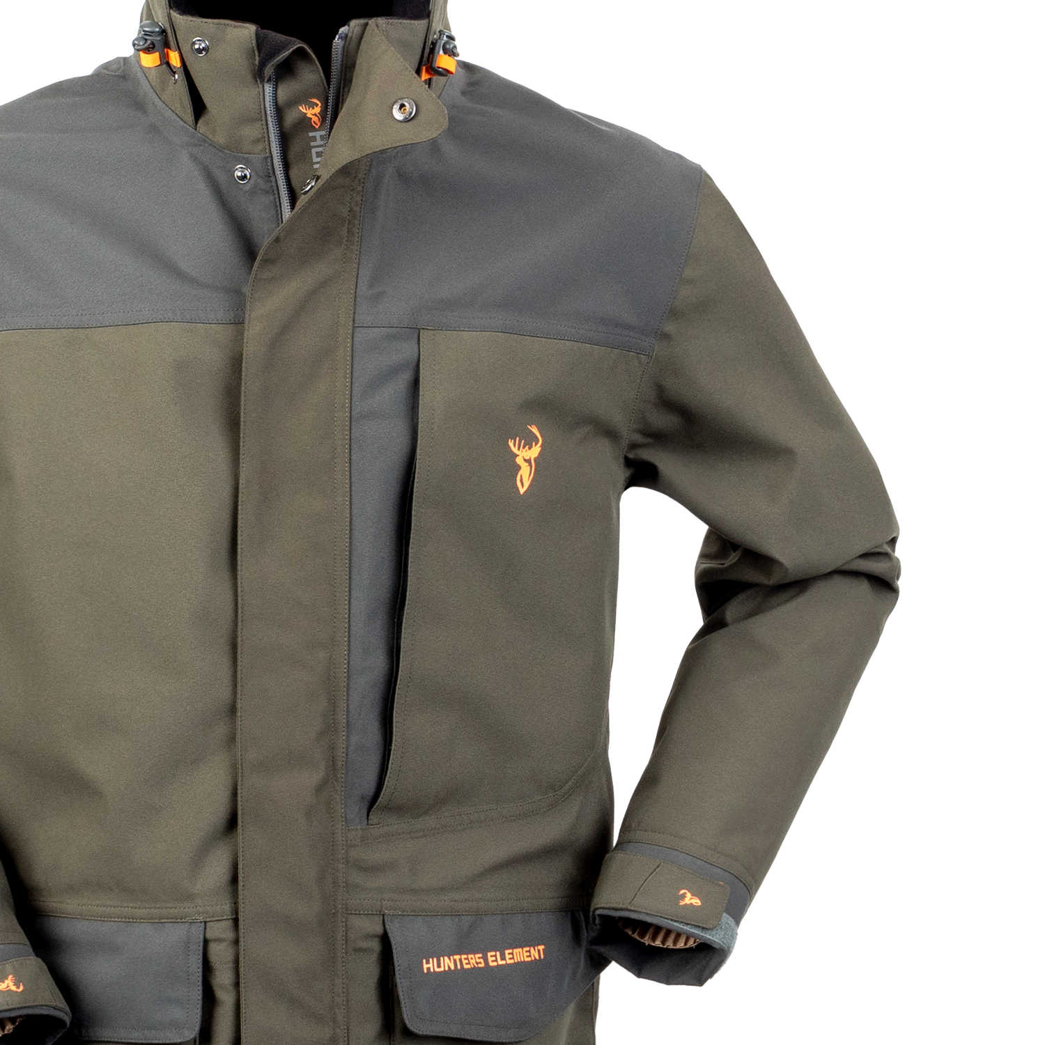The Downpour Elite Jacket is a do-it-all, workhorse waterproof and breathable hunting jacket. It's quiet, lightweight and packs down tight and disappears in the bottom of a backpack making it the perfect deerstalker or waterfowl coat. It has two lower billowed pockets that can handle a couple of boxes of 12g cartridges and a hidden chest pocket to handle callers or cell phones. This thing is the perfect all-around hunting jacket that can't be beaten on price. It looks good, it's quiet, it breathes, it has all the features and most importantly it's super waterproof.