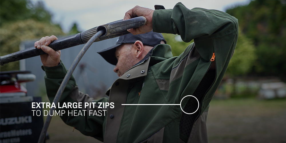 Not only is it more breathable, this jacket is designed with unique giant underarm zip pits to dump heat when needed. This gives you all day temperature control and more comfort; you don't get that swampy feeling from excess sweat.