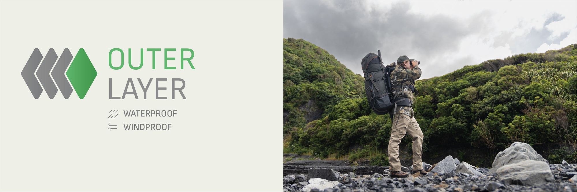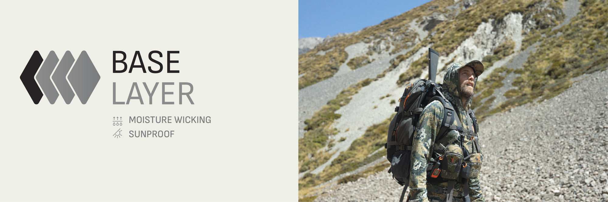 Your base layer should be light and fast drying; the cutting-edge super rapid wicking Eclipse V2 range is built for this, using our groundbreaking EvapoCOOL™ fabric technology to provide you revolutionary cooling comfort when the heat of the hunt gets brutal. Products like the Eclipse Singlet, Eclipse V2 Tee, Eclipse V2 Top or Eclipse V2 Vantage Hoodie are ideal. And for down below our Eclipse Pants offer ultra light full coverage with unbelievable breathability. Or, if shorts are more your jam, try Spur Shorts, or some Dobson Stubbies. For cooler days/spots add an additional Core base layer set.