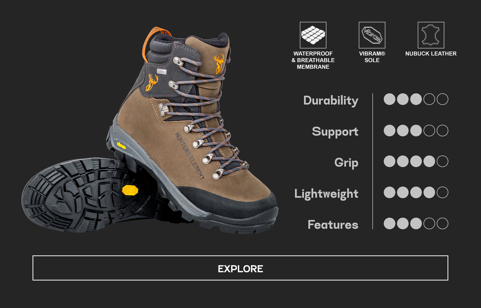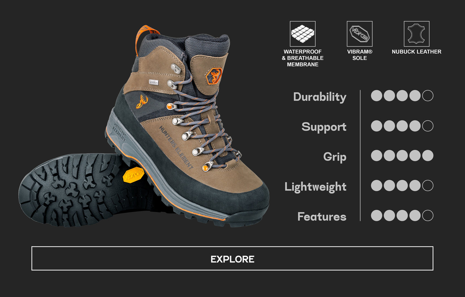 The Element Boot is the ultimate all-terrain boot, suitable for any hunter on any hunt. It’s heavy-duty, so if you tackle very demanding country and lug heavy loads, this is the boot for you.