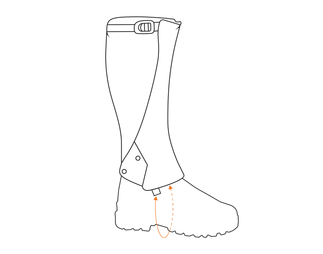 Your gaiter wire length depends on the boot type, the gaiter size, and your legs. To determine the best length for your needs, start by putting your gaiter on your boot and then measure from one webbing tab that holds the wire, following down under the boot to the webbing tab on the opposite side.