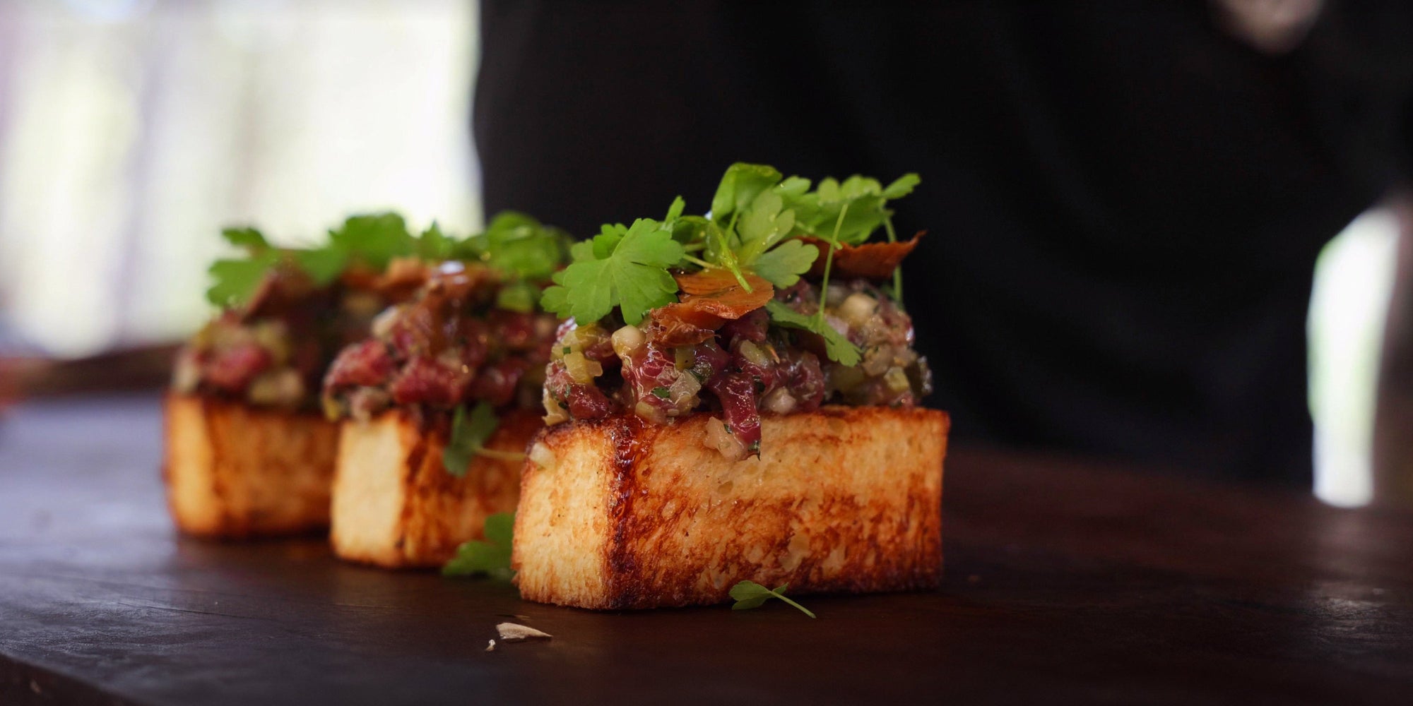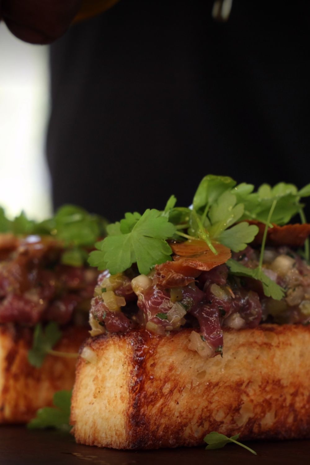 Mix all ingredients together. Serve on a brioche loaf cut into rectangles and toast over fire.